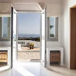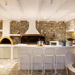 Mykonos flygplats ligger inom 6 minuters bilresa och Ftelia strand finns cirka 10 minuter bort med bil. Villan ligger också 3,1 km från Mykonos arkeologiska museum och 3,2 km från Lilla Venedig.
